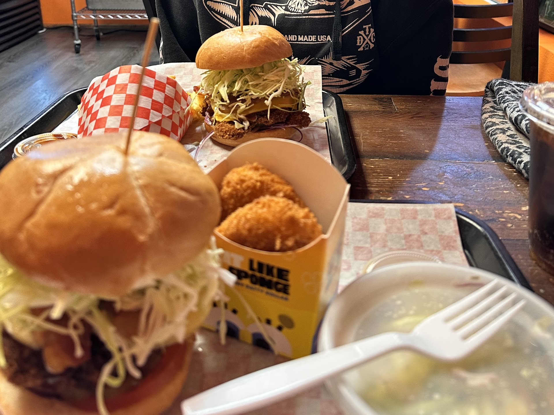 I thought the burger was well made (beef katsu was perfectly fresh and crisy and veggies were fresh). The whole burger was a bit large and challenging to eat at first, and the flavors were a little challenging to discern. However, as you continued to eat, you were able pick on the different flavors. Fries were lack luster, and the 12 spice seasoning carried them. Wasabi coleslaw⦠canāt say Iāve eer had or even heard of such a thing. It was good and fresh, but nothing to write home about. I thought it could use more wasabi flavor, the brightness of the veggies overwhelmed the wasabi flavor.