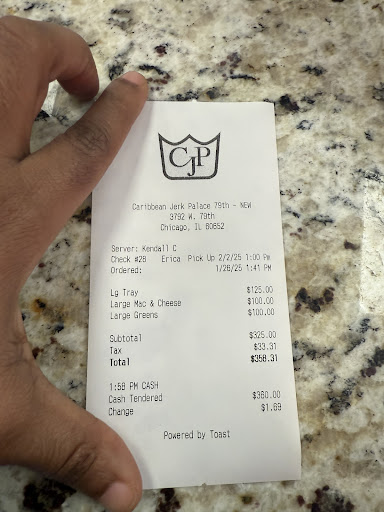 I ordered two whole chicken dinners with Mac and yams for one and Mac and greens for the other also with a side of the plantains. I get there the food in total came out to be almost $70!!! That took me by surprise because that seemed a little high compared to many other jerk spots I’ve ordered from. Because I’m eager to try this new restaurant and I’m hungry at the time I gladly paid the $70 with the cashier saying “I know y’all will be back” insinuating the food was so good that I’ll keep bringing myself back to this business.