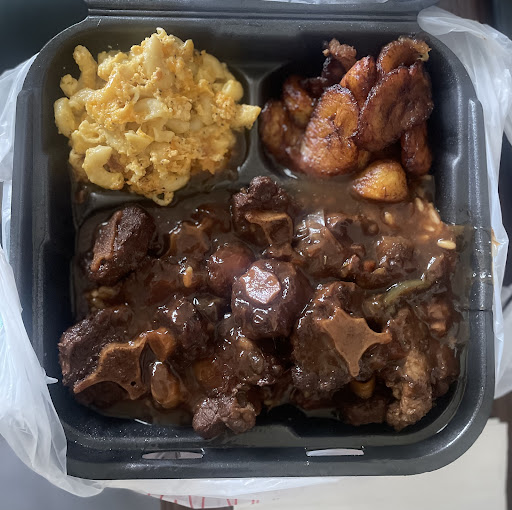 Read moreFood: I ordered the oxtail dinner. It comes with rice and two sides. I chose Mac and fried plantains. Oxtails were very tender and flavorful; not salty. The plantains were perfect and the mac was amazing(they use black pepper, YAY!!).