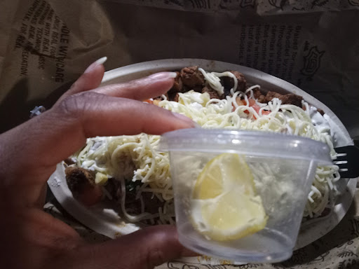So I proceed with my order, asking for extra rice in my bowl because it looked a little scarce and I was informed that it would be $1 extra.. alright.. I finish placing my order and get ready to pay when I ask for lemon.. I was then informed that only ONE cup of lemon comes with my two burrito bowls and any more cups would be $1 each.. if the lemon filled the cup I think I would be okay with just one. But as you can see by the picture, there's only two very small wedges of lemon rattling around in a cup. The cashier "graciously" gave me two cups without charging me after she saw my face. And then, when I went to grab a napkin, there WEREN'T any.. that's because they were behind the counter because "people steal them." Not my words, the worker's words.