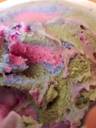Ice cream shouldnt look gross in the gallon buckets, but much of theirs was melted and hadn't been maintained with a flat scoop. The manger should make sure the freezer is 3° and if there was a problem that melted the ice cream. Cut it from the edges and toss it! The waffle cones were huge, but that fake chocolate on the edges is enough to get you sick. It is very waxy and ruins the experience. The very berry sherbet tasted if only sour apple. The mint chocolate ship was faintly green and the chocolate chips had the consistency of shredded coconut. I'm not sure this is because the ice cream was effected by a power outage or what. Some of the kids had the snickers which they loved. We tried to avoid the melted buckets so it was slim pickens at that time. Hope they do better. I realize it is a corporate joint and they dont have the some of standards I'd like, but they def have to maintain tmfreshness of cones and stop using that disgusting fake...