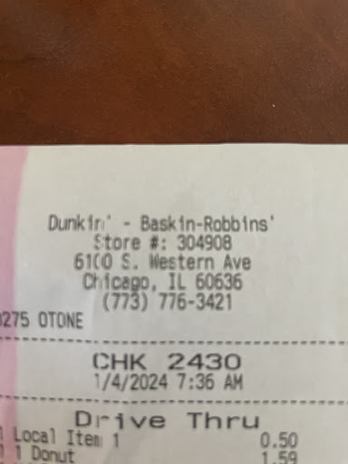 Read moreWorst Dunkin I have ever been too. I donât write reviews but really needed to share. I went to this Dunkin because I was in the city getting my hair done. I love in Plainfield IL and go to Dunkin every morning for coffee. I hadnât had coffee this morning because I was rushing to the city for my hair appointment. Make a long story short, as I was arriving to my appointment, I stopped in to grab a coffee. I ordered my coffee and a donut. The cashier (an Indian) places the donut on the counter and processed to make my coffee. I look into the bag and grab the donut. I take the donut out of the bag and break it in half and noticed that the donut was stale. The cashier walks up to give me the coffee and I ask for another donut because the donut was stale. She yells âyou touched itâ I ask her âWhat does that mean? She says you touched it and refused to give me another donut. She walks away speaking in another language and got the manager. At this point, I asked for my money back. I have never experienced this and will be contacting corporate because the customer service was awful and I was...