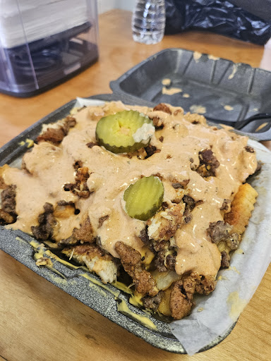 Read moreEnter the joint was greeting and I proceeded to order the 3 Tenders Combo and the I Don't Give a Cluck Fries. The tender is enormous and decently seasoned that come with their signature cluck sauce. But in terms of taste the tender were a little above average to me but the cluck sauce does give it that extra flavor. 8.1. The Cluck Fries idk I got mixed reviews on this because it some with chopped hamburger and chicken. It comes cover with their cluck sauce and melted cheese plus a few pickles over top. The first few bites were ok but once everything gets settle in, I realize the chicken and hamburger was doing much here. It was a lot of fries more so than meat so for the price this is highly overrated. 7.6. The place is not to large either so there only a few seats reasonable to enjoy the meal as well. Customer service was pleasant as well. Overall, not a bad joint I'll come back to try some other items but won't go out my way to get back...