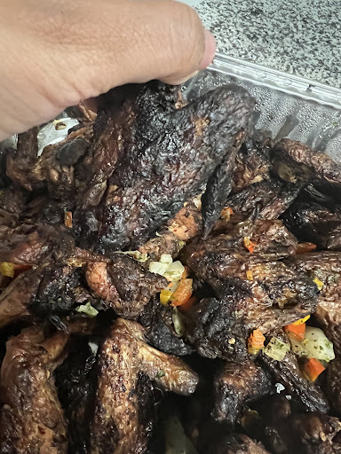 Unfortunately, the food was inedible and not up to your usual standards: • The jerk chicken wings were burnt, overcooked, and so dry they were unservable. • The chicken tasted extremely old, and I cannot confidently take this food to my family gathering. • The oxtails, cabbage, rice, and mac and cheese were also unsatisfactory in taste and quality.