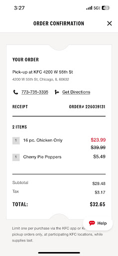 This location offers some seating but there are normally only two people working, so the service might be a little laggy. Still delivers food up to the KFC standards though. 5 stars for being kind! I also appreciate the dedicated...