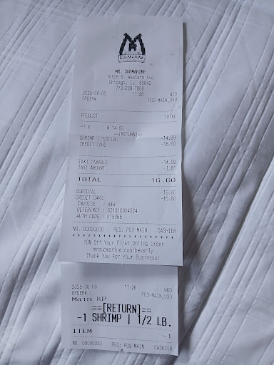 I've been eating at Mr. Sub at 10509 S. Western Avenue for about 11 years, w/o incident. The store is nestled in an extremely small "mall" connected to four to five other tiny store front businesses.. There are no more than 17 parking spaces and, if you park in the few spaces to the left of Mr Sub, you WILL be trapped in, if there's a long line of cars waiting in the drive-through line. Never dined in and always got our food from their drive-thru window. The staff has ALWAYS been friendly and the food- which I only ever ordered their shrimp and fries dinner and my husband has ordered their submarine sandwiches and chicken tenders, has always been cooked to order and received juicy, hot and fresh at the window. The menu is well lit at night and the font is large and clear. Prices are very reasonable for the portion size. I would've definitely recommended this place to the masses but that all has changed. I ordered what I normally do, 1/2 pound butterfly shrimp and fries dinner and my husband got the chicken tenders dinner. I arrived home to find the shrimp were cooked darker than usual. Upon closer inspection, I noticed that there was coconut batter on my shrimp. Coconut battered shrimp has NEVER been a menu option. I decided to pull the nasty batter off and just eat the shrimp but they were overcooked, gummy and inedible! I called the restaurant immediately and voiced my complaint (calmly) and asked for a refund. The same gentleman who took our orders answered the phone. What turned me off was when he said, "We usually sell coconut shrimp." I informed him that what he just uttered was untrue. I also told him how many years I've eaten there and have never asked for nor was sold coconut shrimp. He offered a replacement food item if I came back tonight. Since their store is about 10 miles from me and it was late, that wasn't an option so I told him I'd be there the next day, between 10 am.and noon. He told me who to ask for and to bring the food back. I did. I went in the store (which was a nice size, clean and bright with tables and chairs to dine in) and the person the cashier told me to ask for wasn't there so I told the cashier succinctly what happened. She refunded my money to my credit card swiftly and without hesitation. She apologized for the inconvenience and said that if I had any additional issues to let her know. The problem with this menu change is that people sometimes nibble on their food on their way home...sometimes w/o looking at it. If I were allergic to coconut and ate that, I would've had an allergic reaction and been dead. It's irresponsible for a business to fail in disclosing to customers when a food item that was ordered, was switched to something else. Sadly, we'll never patronize them again. I've included pics of their menu and the...