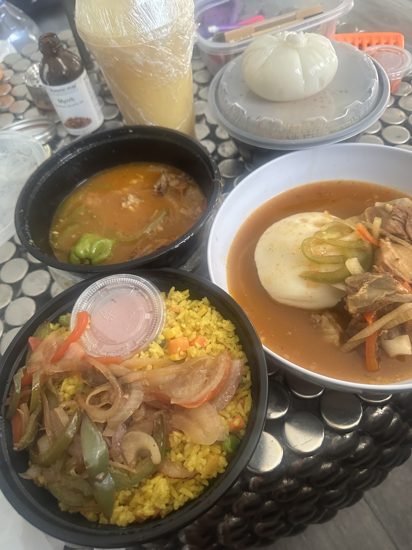I ordered the Goat pepper soup with fufu, the fried rice, and the pineapple ginger drink. I ordered from uber eats so the prices may not be the same