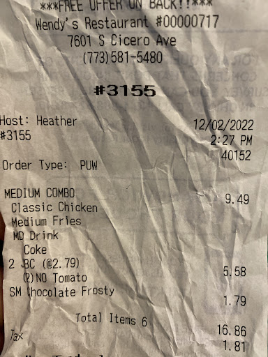 Read moreAlways check the current and updated reviews. I wish I had saw the comment about this location having roaches. My last visit was on 5/9/23. In my experience, I would describe eating here a hit or miss. When the mall was thriving, this location always was on point. Now I see that it's under new management. That explains it all. Poor management. The food that I got was alright but I noticed that the Dave's double is prepared differently. Of course, I tried to call and inquire but no answer. It doesn't look like the Dave double that they advertise. They basically gave me a double burger and the one slice of cheese was slapped on top of the other ingredients such as the lettuce, onion and tomato, pickle. The cheese is supposed to go on the meat not the ingredients. So, either this location is doing their own thing or Wendy's is cutting corners altogether. It's misleading none the less. A double cheeseburger is just that. It's not one slice of cheese put on there any ole kind of way. I will attach a photo with this review. If weren't for me reading the review about this location having roaches, I would've let them know my dissatisfaction. But it doesn't matter, I'll never eat at this location again. They were one of the last few locations that I would go to when I crave Wendy's. I will travel past several locations if need be, for better food...