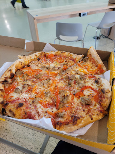 Read moreOrdered a five cheese plus Italian sausage(additional $3+). My number was called and the female put the pizza on the counter but didn’t slide it closer. Yes, that’s a small quibble but it IS good customer service. Took the box to a table and opened it and it looked yummy but I couldn’t see the sausage so I poked a place but didn’t feel any sausage so I took it back to the counter and explained to the cashier and he was very nice and said sorry that was the wrong pizza and gave me mine. I moved out of the way and opened the box and saw the sausage and closed the box and went to a table. Opened the box and noticed it wasn’t cut so I asked someone else with the same box if theirs was cut and they said yes, so back to the counter I went. I asked if I could have it cut and the same guy said yes and someone else took it and cut it. As you can see from the picture it was very over cooked and the sauce was spread across the crust. Obviously the qc was not very good, especially at the expo station. The pizza was ok but I would not go out of my way to eat at the...