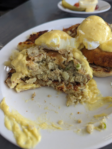 Read moreI ordered the special on the board that was just labeled "Salmon Benedict" with no description. I assumed this was like all the other salmon benedicts I've ever had in my life. The server didn't provide any kind of heads-up saying that it was a "salmon patty". My partner ordered the ham and cheese club but asked first what was on the club. The server was confused and asked, "you mean what comes on the side"? He said no, ON it. He responded saying, "oh just ham and cheese". So my partner ordered it. Food finally comes and my "salmon benedict" doesn't look like salmon. So I asked him about it and he said, "oh it's a salmon patty"...no where on the board or when I ordered it, did anyone mention that it wasn't going to be actual pieces of salmon like a normal salmon benedict would have. He asks me if I wanted something else and I turned down the offer because I was starving and already waited a half hour for our food. So with an open mind I try the salmon patty...it was disgusting. It tasted nothing like salmon. It tasted/looked like a really gross version of a crab cake. The poached eggs were over cooked and were basically just hard boiled. My partners sandwich came with tomatoes on it that he had to pick off. That is why he asked what was going to come on it...he wanted to know if there was anything on it that he didn't want. If the server would have mentioned the tomato, then he would have told him, "no tomato". So he had to take apart the sandwich and pull all the tomatoes off.