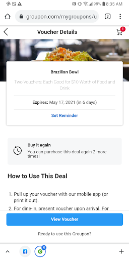 Ā Ā Ā Read moreI visited long time ago Brazilian bowl in Lawrence and even though tasted good I didnāt go back. I was driving by Lakeview this time and decided to search for something healthy in the area and Brazilian bowl pop up. I got the steak bowl and my brother the chicken one and I most say I was very impress this time. Everything tasted so good and fresh, I ate that bowl like a hungry man that havenāt eat in 5 days lol. I will definitely go back again. Thereās only 2 reasons why I didnāt give 5 stars to this place . First one was space, this location itās very small, it wasnāt complete full but if it was definitely would have been uncomfortable. The other reason was the friendliness. Cashier seems to be either upset or tired. Now a day thereās way to many options for dinner, specially so go. For those that still visit restaurants you are expecting good good with a nice staff but this person seems to be bother. Other than this 2 issues I will still visit Brazilian bowl, very...