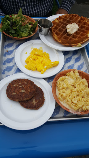 After ordering our food, it was brought to the table and the pancakes that I had ordered were not fully cooked. The batter was running out of the middle of the pancake. The server took my plate back and came back to the table 5 minutes later to tell me they use cream in the batter therefore attempting to explain its consistency. The person who I was dining with, who is an avid chef, said she never heard of cream in pancake batter. Secondly, if this is the house recipe why would the server not tell me this right away. But instead took the plate back and then came back with some excuse as to why it wasn’t fully cooked. No. Sorry.