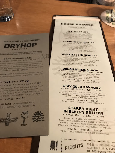 DryHop offers a conflicting experience. To elaborate, the food and beer offerings are fantastic. My fiance and I arrived around 4pm on a Monday night during a holiday weekend and there was a vast array of beers (brewery specific and guest draughts) to choose from. We stuck to the DryHop beers are we were very please with the taste and pricing of the beers. For our food options, we did their Monday night special which is a burger, beer, and a shot of bourbon for $15. The burger is one of the better burgers I've had in the Lakeview neighborhood, and days later I'm still relishing in the flavor of the burger. The combination of the raw cheddar and their house blend of meat was fantastic, and we chose to spruce it up with a crispy heap of bacon. The fries were a little disappointing, a tad overdone and kind of bland (outside of the heavy dusting of salt), but the aioli sauce helped to stomach the fries. My issues with DryHop come with the service. It was absolutely abysmal and it is probably the reason why I won't be back to DryHop for any reason but to fill up a growler. We were promptly seated, but it took our waitress a solid 10 or so minutes to come and greet us, which was odd given the fact there were three servers for the 10-15 table offering which was about 80% full. We put in our beer order and it took another 10 or so minutes for our beers to arrive. We stated that we didn't want to put in our food order for another hour, which apparently meant to the waitress that we didn't want to drink in the time frame either, as our first beer glasses went empty, along with our water bottle. Around 5pm our waitress came by and said she was transitioning us to a new waitress who would take care of us. The waitress also subjected us to the ignoring routine, resulting in us only having two beers and our burgers by the time we left around 6pm. I was absolutely appalled by the service given the size of the restaurant and the ample staffing. The atmosphere was what you'd expect of a brewpub, a huge focus on the brewing tanks and an impressive bar with the respective tap handles and liquor shelving. I'd recommend sitting at the bar or just stopping in for a...