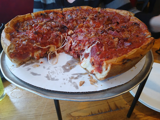 If you're looking for some delicious Chicago pizza, PLEASE avoid this location at all costs. I am typically not one to leave bad reviews, but I have never witnessed a more ridiculous restaurant situation than this, and a stuffed pizza is not at all worth the headache to follow.