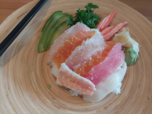 There's a huge mound of rice and imitation crabstick with raw fish served on a wooden platter. The platter is unfinished and unglazed, and I do not feel safe eating raw fish over it. If they reuse the platter, I don't know why they would choose it over a regular glazed ceramic bowl, heck, even a solid piece of slate rock. There are nooks and crannies on the wood where bacteria and parasite eggs can hide. I am not crazy about safety, but even an untrained eye would put a second thought to this choice.