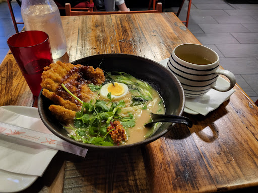 So I've actually been here once before. It was during my own bad circumstances, so I decided not to review it since I did not feel it was fair. So here we are again. Giving it a shot under fair circumstances. Unfortunately, "fair" did not mean it "fared" well. I ordered their pork belly ramen with came in a chicken broth topped with the pork belly of course, but also some cabbage, half an egg, green onion, and some seaweed. We'll start with the noodles themselves. Simply put, they were disappointing. Advertised as "Japanese egg noodles" (ramen noodles are typically not egg noodles), they were simply reminiscent of the flash fried instant ramen noodles. The toppings were also not the best. The egg was half of a hard boiled, un-marinated disappointment. The pork belly, while tender, was dry and charred, imparting a bitter flavor. And then the rest of the vegetables were thoughtlessly thrown on top of the bowl. I will say they do give you quite a bit of pork belly which is nice. And then finally the broth. Extremely one note. Didn't really have any depth of flavor. They don't tell you on the menu what it's seasoned with, but it tasted to me of miso. All that being said, it wasn't bad per se. Just not particularly good. Overall, while I'm happy I gave this place a second chance, I do not think...