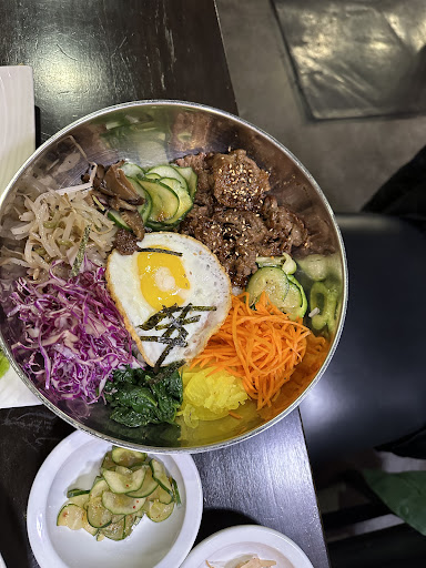 Read moreThis restaurant was excellent! We are happy to find this neighborhood gem. The kimchi pancake was like nothing I have ever had. I would highly recommend ordering it. I could have eaten the whole thing by myself, but of course, I shared the goodness with the rest of our party. Three of us had miso soup, which was chock full of tofu and seaweed and not overly salty. The seaweed salad was very tasty. I had the bibimbop chicken. It was beautifully plated, like a work of art, and delicious after Kim suggested mixing it all up to break the egg and get all the flavors and textures in each mouthful. The five bon chon - sprouts, cucumbers, seaweed and daikon, mung bean cubes and kimchi - were a wonderful extra bonus to our meal. They offered refills on the bon chon. Other items at our table were the chicken teriyaki, bulgogi and the crunchy sweet potato roll. Everyone really enjoyed what they ordered. As a nice finish to the meal, we were served complimentary fresh and juicy sliced oranges. The service couldn't have been better. We look forward to...