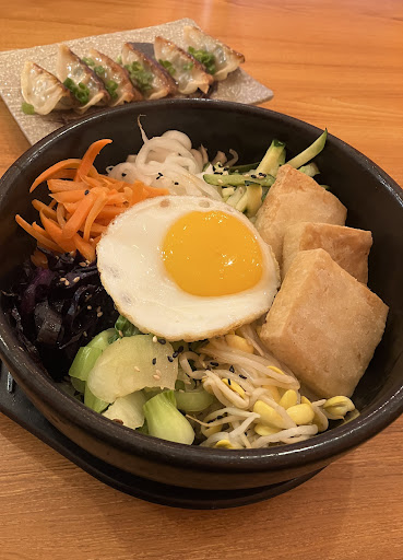The bibimbap was really nice. Mix of classic and original toppings. They used really nice stone bowls that crisp up the rice but they're still kind of nonstick so you don't have to scrape it. The bulgogi was really high quality too. Pro tip: proper table manners in Korea say to eat rice with a spoon, no one would ever try to eat it with chopsticks.