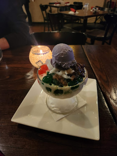 For our entrees I got the Crab Crusted Salmon, which was incredible. A super thick fillet of salmon crusted with real crab. Served with this amazing rice and cabbage vegetable mix. Seriously awesome. My friend got the pancit, and it tasted truly homemade. Every flavor was perfect. The salmon took a while to cook, not that we noticed from the great time we were having, but the staff clearly noticed and came over with 2 delicious shots to thank us for our patience.