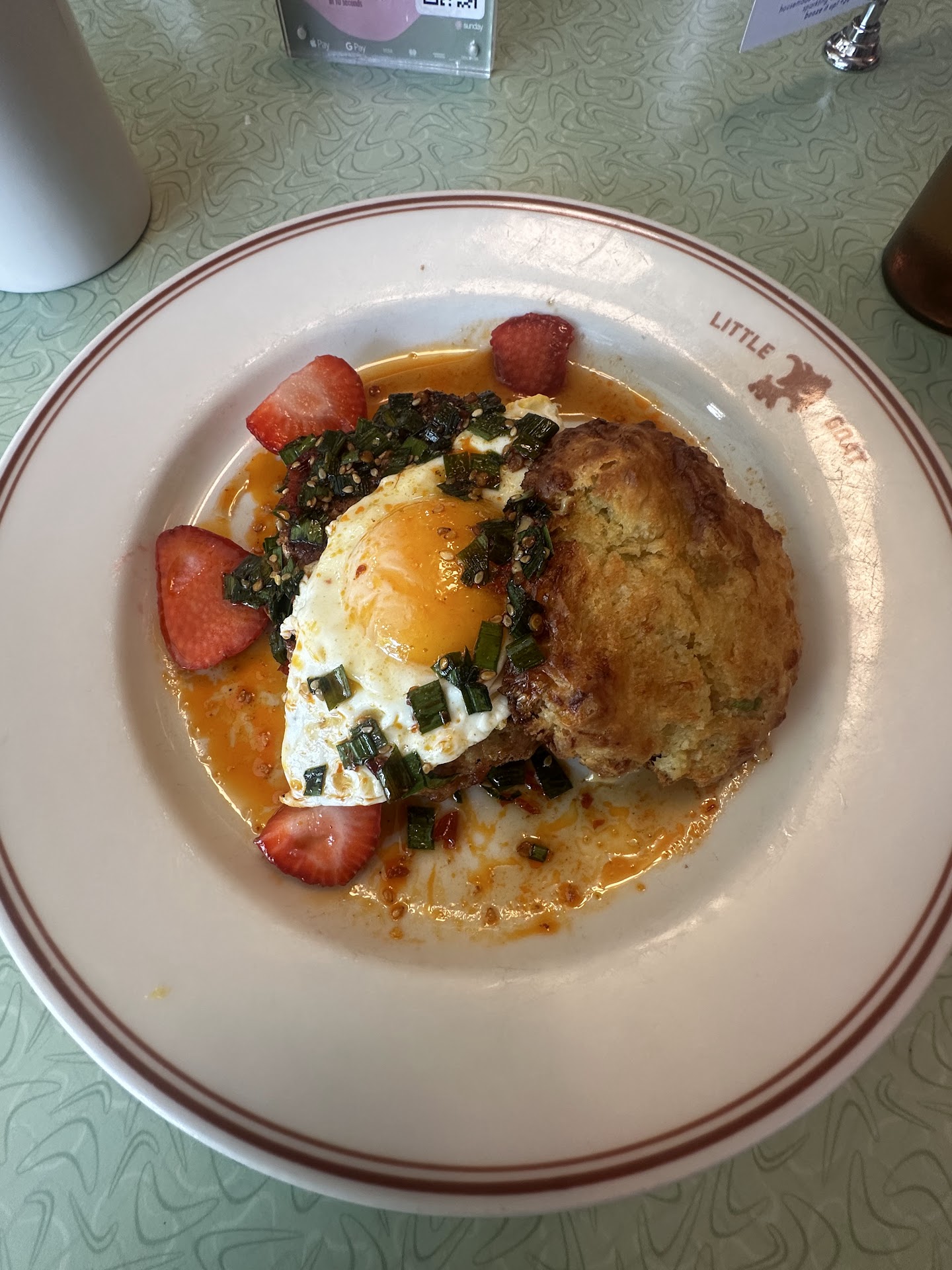 I found Little Goat Diner from the Google search and put it on our must visit list when I was planning for the trip to Chicago. My husband and I arrived on a Sunday around 7:30am, not knowing that we entered the restaurant through the side door. There was one employee behind the bar, and a barista at the coffee station. We received no eye contact, and no greeting. We stood there for a while. A short-hair waitress walked from the dining room to the bar and checked on her cell phone. Then she chit chatted with the barista and went back to the dining room without acknowledging our presence. We stood there in amazement. I finally said to the barista, âTwo for breakfast, pleaseâ. She said that we needed to go to the hostess station. We walked to the hostess station. The same waitress was there, and another lady who kept her head down at all times looking at her tablet. Again, there was no greeting. The waitress walked away, we followed her and thought that she was going to seat us. When she discovered that we were behind her, she said, âDonât follow me! I am not your hostess!â So we went back to the hostess station. The hostess finally pulled two menus and seated us next to a couple with a thin divider between our tables. I asked the waitress if we could have a quiet table. It was 7:30am, and there were plenty of other tables available. Unenthusiastically, she moved us to the two-people booth right behind the same couple and then left. There was no smile, as if we owed her a million dollars.