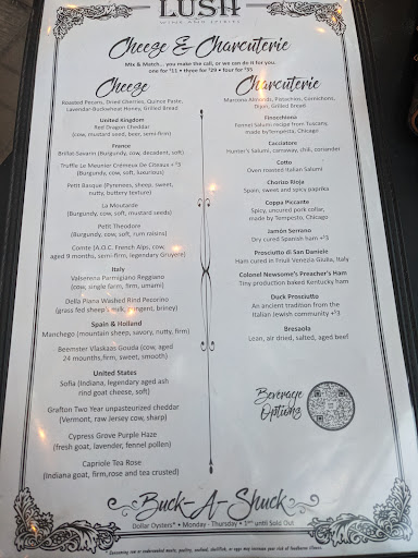 Big selection of wine and rare bottles of spirits inside. I had no idea we had a gem like this in the area. They even have some good bottles of Japanese whiskey. Can't comment on the food but the sandwiches did look appetizing. According to their menu it's 1 dollar oysters Monday to Thursday all day until they run out. So I'm definitely going over during those days. The staff were kind and accommodating to my dog on the patio. Select glasses of wine can start around 10 dollars. There are some happy hour deals centered around drinks from glasses, wine flights, and sangria pitchers. As well as a taco Tuesday special.