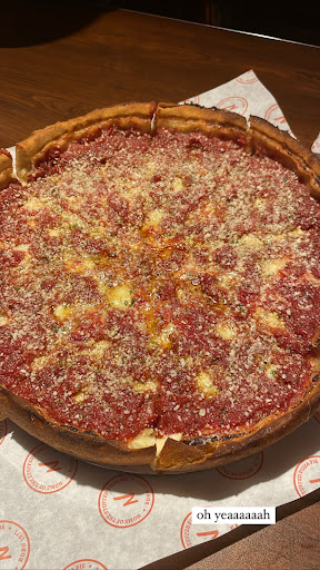 Read moreI love nancy's pizza. It's chicago deep dish at it's deep dishiest. (They call it a "stuffed" pizza, but don't confuse it with popular chain stuffed pizzas; at dominos I believe stuffed means theres cheese inside the crust. Nancy's isn't like that). The pie itself is several layers of sauce and cheese and whatever toppings you want, usually with more sauce on top. It's somewhere between 1 1/2 - 2 inches thick! It will put you into what my roommate and I would call an extremely pleasant "cheese coma" ;) It's heavy eating, so know what you're getting yourself into. It's totally worth it. The pizza takes about 40 minutes to make, but it's worth the wait!