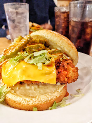 Parson's Chicken & Fish is a fantastic restaurant located in Lincoln Park, Chicago. The moment you step inside, you are greeted with a laid-back atmosphere that feels like you are at the beach. The bench seating and casual vibe make it the perfect spot for a casual dinner with friends or a quick lunch break. But what really sets Parson's apart is their delicious chicken sandwich. The chicken is cooked to perfection it is so juicy that it nearly melts in your mouth. The sandwich is piled high with crispy lettuce, juicy tomatoes, and tangy pickles, all nestled between two soft buns. The sandwich is not only delicious but also very filling. It's an upscale version of the Popeyes sandwich, if you like that one you will love this one for sure. In addition to their famous chicken sandwich, Parson's also offers a variety of other menu items such as burgers, fish sandwiches, fries, and all traditional American food. Their burgers are cooked to perfection and are a great option for those who are looking for something other than chicken. The fries are crispy and well seasoned. The restaurant also features a full bar, with a great selection of beer and wine. They also serve signature cocktails that are perfect for sipping on while you enjoy your meal. The staff is friendly and attentive, making sure that you have everything you need to enjoy your meal. Overall, Parson's Chicken & Fish is a must-try for anyone visiting Lincoln Park. The atmosphere is casual, the food is delicious, and the staff is friendly. If you're looking for a great spot for a casual dinner or lunch, Parson's is the place to be. I would definitely recommend this...