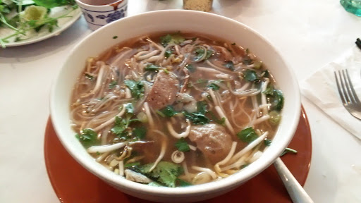 We ordered a variety of traditional Vietnamese dishes noticing that the price was on the high end. By 7.25 all orders were in and I made a special request that since the kids were very hungry that their food come out quickly. Almost 20 minutes later two appertizers came out. The tempura shrimps were enveloped in super thick batter and sure enough the flour is still uncooked in the inside. The banh xeo, an easy but endearing Vietnamese dish, was burnt in the outside but also uncooked inside. We did not recognize some of the accompanying vegetables or the way the dish was presented as authentic Vietnamese. We asked to return the shrimp dish (3 of the 4 shrimps left.) Then we sat there and waited patiently for our other dishes, one of which is pho, which any good Vietnamese restaurant would be able to bring out in 10 minutes or less. But not this one.