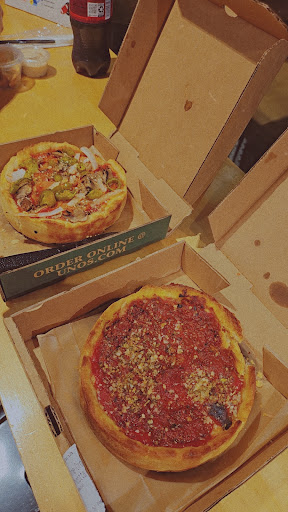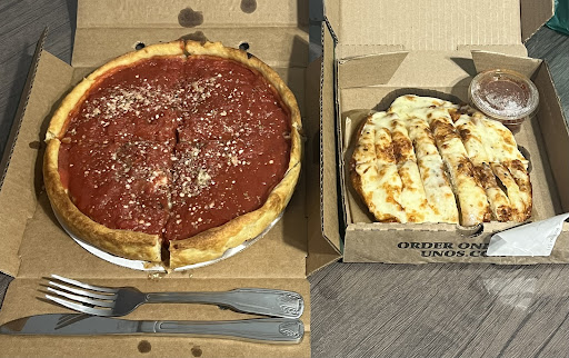 $20 Sausage deep dish pizza was good taste-wise, $9 breadsticks were terrible/inedible (threw them in the trash, that’s how bad they were). THE WEBSITE IS MISLEADING. Under deep dish it states, “10 inch Regular 8 slices / serves 2 - 3”. It’s not until you’re actually ordering where you see the correct information, which I missed because I went based off of the website. Imagine ordering a pizza expecting 8 slices, but you get 4 instead. Completely misleading. The size of the deep dish pizza was underwhelming, should be renamed to “personal”. Probably never going back, I’ll stick...