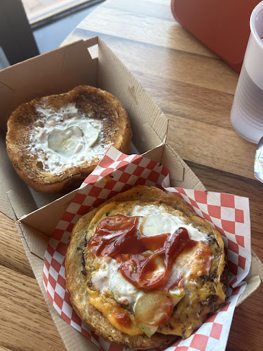 I ordered a single burger with “everything on it” My bun was bigger than the single patty, it had a few pickles and mayonnaise on it, the bun was approaching stale and definitely different than it usually is. I went to the counter to ask for lettuce and tomato. (I added the ketchup)