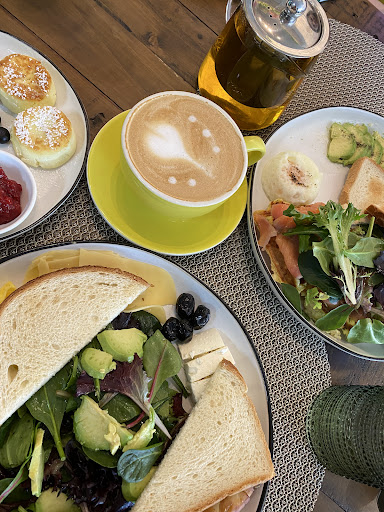 Read moreLovely place! The interior design atmosphere is so welcoming and cute. This was my first visit and I can’t wait to get back in there again. I ordered a potato waffle, breakfast plate, and syrniki regular sandwich coconut. Everything was delicious. The potato plate comes for some reason with an extra 2 Toast which I didn't get why, it already has a potato waffle as a toast. And only one poached egg. The whole time I felt like they forgot to add one more poached egg in there. Because there should've been 2 poached eggs. Syrniki is good but not quite like they are supposed to be. The farm cheese inside is overly cooked and originally they shouldn't be overlooked. Coconut syrniki is not much different from original ones. I've got also to go to almost all of their pastries. Let m tell you they do the best Napoleon cake! It’s amazingly delicious. I also loved pistachio cake with raspberries and milk cake is so so good. Merengue was also decent but too sweet as well as pistachio cake. Macaroons were too sweet too I with they sweeten them less and they would’ve been perfect. Also as a tea lover love their tea...