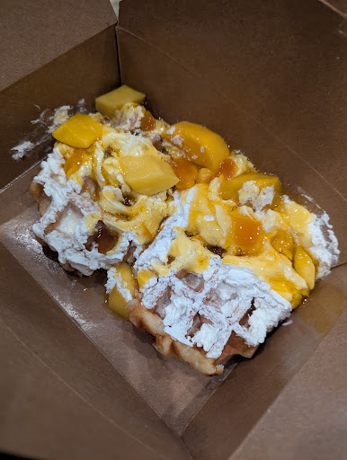 I also brought home the new mango Belgian waffle and was a bit disappointed. I was hoping for something lightly sweet as a snack, but no this is very sweet and firmly in a dessert category. The waffle itself seems both undercooked and grainy with sugar in some spots, and hard and dry in one spot like they were microwaved. Personally I'd rather have just a plain waffle made fresh, or at least to skip the mango syrup. But maybe I don't have the same taste as most customers :)