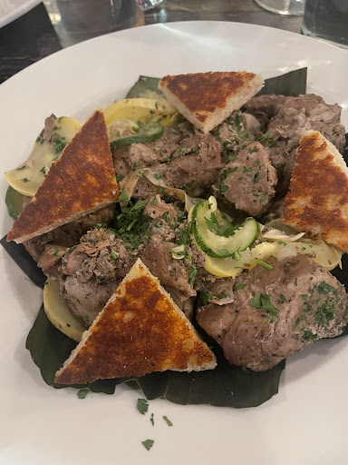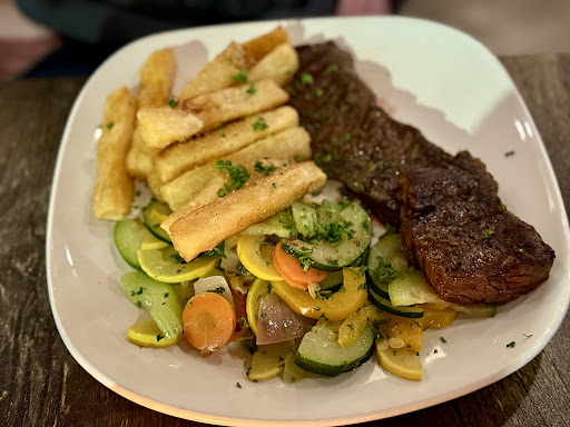 We both ordered the skirt steak, which was very tender but lacked seasoning—definitely could have used more flavor. They were out of yams, which was disappointing since I’d been looking forward to trying them. Instead, we had the fried yuca and sweet plantains, which were tasty, and the ranch dipping sauce for the yuca was a nice touch.
