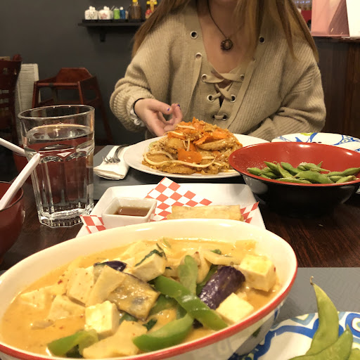 Read moreVEGAN HEAVEN. I’ve never been to such an amazing vegan restaurant, let alone a restaurant where the ENTIRE MENU is vegan. The restaurant itself is much smaller than I thought it would be, but I loved that part. It made it feel so cozy. It was closer to the size of a Subway sandwich shop than a typical restaurant, but maybe that’s just a Chicago thing idk (I’m from the suburbs like 45 minutes away). We came here at around 7:30 on a Tuesday night and the place was 95% empty so we were able to sit right down at a table easy peasy, but I can easily see this place becoming crowded on weekend nights, or at least it should be. And the FOOD. Oh my GOD. My girlfriend and I ordered way too much, but it tasted so good it was worth the extra weight gain. We got the edamame and spring rolls for appetizers, she ordered the praram’s plate with soy chicken (and I think she asked to add carrots or something, I can’t remember exactly we ate here like a week ago before I wrote this review), and I got the red curry with tofu. We also got soup with our meals (I think it was miso), which I had no idea we would even get so that was a nice surprise. Every last bit of food was sensational. I GUARANTEE you that if you brought your meat-eating friend here they’d immediately fall in love. And also of course the service was fantastic. Our waitress was nothing but kind and attentive. I can’t wait to come...