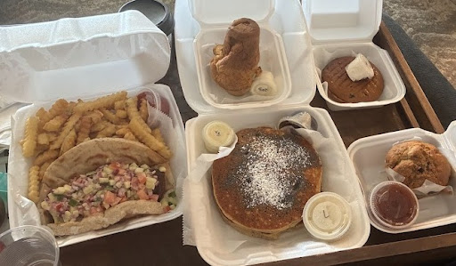 (tldr at the end) About a week ago, I ordered several items to try, with mixed results. In descending order from best to worst: The falafel? So good. The bread was so nice and chewy, and the falafel pieces themselves were almost perfect. Could have been fried just a bit longer, but so good. It came with fries, and they were nice and crispy (so rare to get with a wheat allergy). This was my favorite item. 4.75/5 Second, the lemon poppy seed pancakes: a nice big serving size, and the lemon glaze added a lot. However, and this is on me for not understanding from the description, but the pancakes themselves did not taste of lemon at all. There was supposed to be lemon zest on top, but I only tasted the lemon when I used the glaze. Still, very good. Almost perfect if the pancakes themselves had tasted more like lemon. 4.25/5 The pop over: Good with the honey butter, nothing special without it. Still nice and chewy/soft inside, but I wouldn't describe it as "custard-like." I ate it with some jam and the honey butter, and it still tasted really good, just might not order it again. 4/5 Blueberry muffin: A good muffin, but not what I was craving. I was hoping for one of those large blueberry muffins you can buy just about anywhere, but gluten free, and it was more the consistency of a cake doughnut. Perfectly fine, just not what I wanted. 3.5/5 Finally, the blueberry bagel: I didn't see anywhere that the bagel would be a bagel thin, but it was. It almost appeared to be the kind from the store. And it was Hard. Not crunchy, but vaguely chewy. Unpleasant and almost impossible to eat. I tried a few bites and heated it up to see if that would help, and it didn't. 0/5 Overall, everything would have been better fresh, but as it's all pickup or delivery, I'm not sure how that would work. I may see if there's a nearby park and eat it there next time.