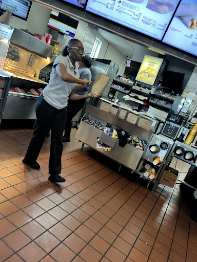 The drive thru wasn’t particularly busy. The inside was empty with no customers inside eating. We chose to dine in. There was one customer in front of us, who had already placed their order and was waiting for their food. It took the cashier over 10 minutes to even “get to us” to take our order. She kept walking off, going into the kitchen area, etc. The first customer’s food was ready after 10 minutes, but their order was incorrect and they didn’t receive their drinks. Our parents ordered their food next, which took quite some time for the cashier to do — well over 5 minutes because she kept walking off mid order. (They ordered 2 McGriddle meals with coffee). Again the cashier moved at a snails pace. She kept walking off. She eventually gave the first customer their missing drinks. She didn’t correct their order. My husband and I had now waited well over 20 minutes to have our order taken. I finally got out of line and went to the restroom. The restrooms were dirty. My husband left, got in his car and went through drive-thru, as it was clear the drive thru was given priority. My husband was given our orders in drive thru before the customer who was behind us in line even had his order rang up inside. That’s insane. There was a front cashier, someone running drive thru, atleast two people in the kitchen area. It makes NO sense for the service to have taken well over 30 minutes, the place was not at all busy, and still our orders were not correct. Our drinks were wrong, we were missing an order of fries, etc. Every single table inside was dirty. Every single one. There was a dirty mop randomly in the middle of the dining room, and further from it was a mop bucket full of dirty water. We chose to just eat in our car and get out of there. The food was cold and fries were soggy. Good grief.