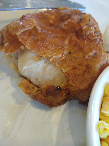 At this point my daughter was the only one in our party with hot food. I ate my fish. My husband tried to eat his, but his cod was drenched in grease and there was an empty ketchup bottle on the table, so no condiments. The general manager brought both of my sides back out to the table and only half of my husband’s macaroni cheese order. Still haven’t received the other portion of our banana bread order. I’m over our dining experience and just want to go.