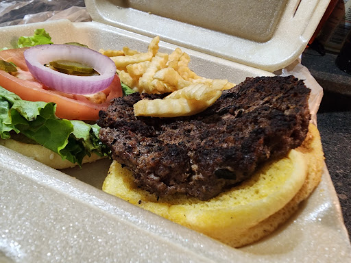 Read moreIf you are going out to a restraunt above McDonald's and want something better than you can cook yourself at home in a pinch; this isn't it. I gave 3 â's only because our waitress was very nice and patient. I gave it 2 â for cleanliness. The bathroom was not clean. The floor in Women's bathroom was sticky with toilet paper on the floor in different places. Just a uncomfortable feel of uncleanness. I gave 1â because the food was all around bad. My husband had pulled pork. He said it was tough to chew. I ordered prime rib only because it tends to be a tender red meat. My luck it was dry and too tough for me to chew. I NEVER complain because I have worked in the public (not food) over 40 years. I held back tears because I felt guilty for complaining, I'm 63 years old and never had the nerve to complain. The prime rib was the last straw. I told the waitress I was feeling so bad about saying anything. She was nice and apologized. Another lady came to say she took the cost of the prime rib off our ticket. That was fare. Then she told us there were only 2 of them left from the day and probably shouldn't have been served. (Ya think? TMI). We ordered sandwiches for our teen sons at home. I didn't look in the box. When I got home I couldn't believe what We paid for. I could only get a picture of the sandwich described as a "Black angus bacon and cheese burger". We left off the bacon and cheese. The picture on the menu looked like a hand patted beef burger. As you can see in my picture it was a fried patty smaller than McDonald's Quarter pounder! McDonald's fries are also better and their meal comes with a drink. Woodys crinkle fries were thin, unsalted with no drink at a couple...
