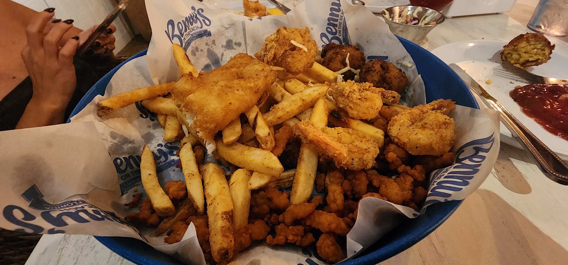 Read moreI went to Benny’s Ocean Walk with my family to celebrate my husband’s birthday, and it turned into an absolute nightmare! We used to love Benny's, but this experience was beyond appalling. First, they had the nerve to seat us at a filthy table, covered in leftover food all over the seats. We had to clean it up ourselves! Then, we were stuck with the worst waitress ever. She couldn’t care less about doing her job, probably because she knew she’d get her tip no matter what. Her attitude was atrocious. When my father-in-law had a problem with his meal, she was nowhere to be found. By the time she wandered back, she just asked if we wanted boxes. The food was cold and inedible, and she didn’t even apologize! She disappeared again for 15 minutes, leaving us high and dry. When she finally showed up, she offered us dessert, but we were done. We wanted out! She informed us the manager refunded my father-in-law's meal, but the manager didn't even bother to come over and apologize or make things right. To top it off, we waited another 10 minutes for the check, and she was impatiently hovering, rudely snatching my mother-in-law’s card. She didn’t even provide the texted receipt as requested. This was hands down the worst service we've ever had at Benny's. It’s heartbreaking because we used to love it there. We’ll still go to the pier, but Benny’s Ocean Walk is off our...