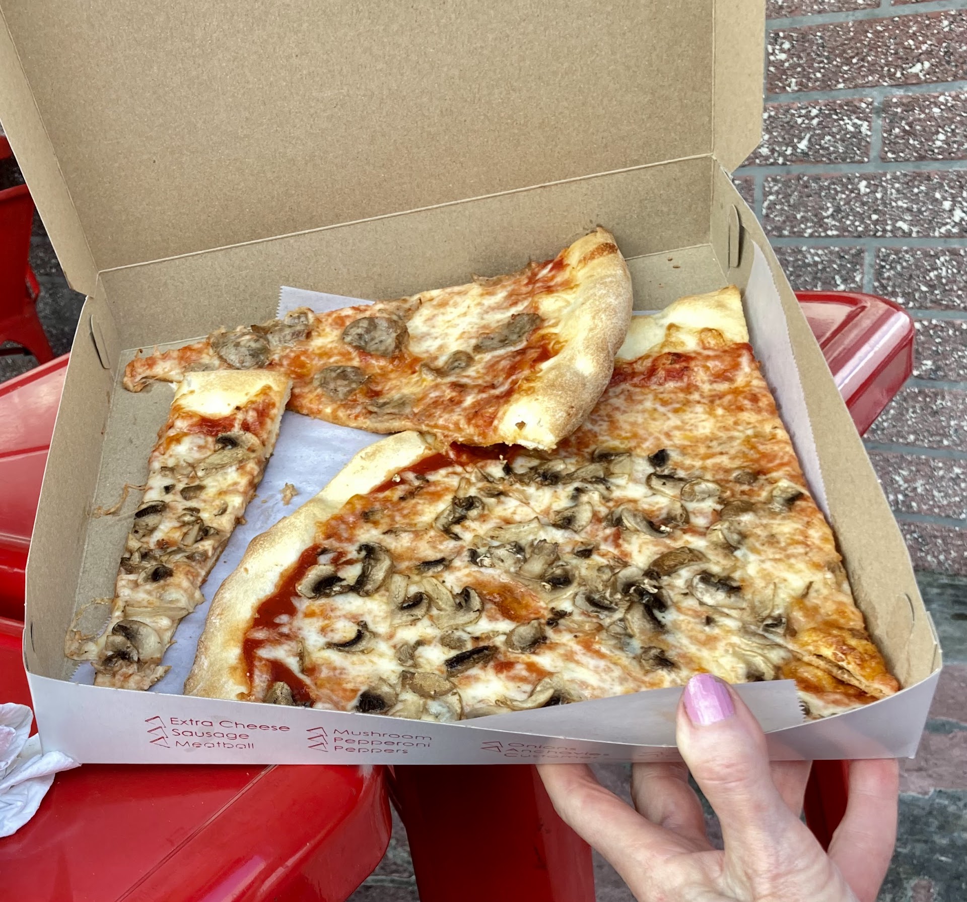 I went inside and asked about the different slices of pizzas on display. The server/waitress at the time stopped to tell me what the different slices were. I thanked her for her time and waited at the counter for someone to take my order.