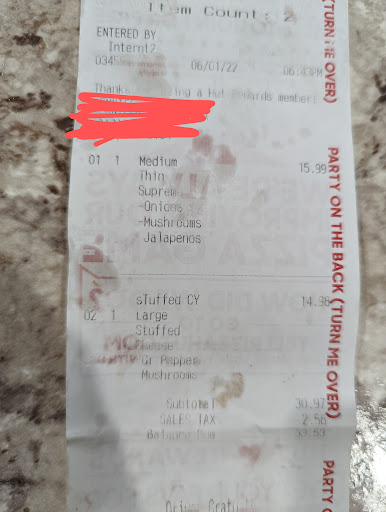 Read moreI believe I should have just gone to little ceasars ,at least I could have expected a horrible pizza.today's purchase was a waste of my time and money.I ordered online and played online which was my first mistake because if I hadn't already played I would have refused the 2 pizzas.I waited at the window for 8 minutes before any one acknowledged I was there.I then added a 2 liter diet coke,he said they had diet Dr pepper or Pepsi,I said diet Pepsi,he then brought me a regular Dr pepper....seriously? I got that straightened out then I got my pizzas,yes I should've checked them but I didn't because he handed both at same time with pepper and cheese packets shoved into the front flap of boxes and I usually have no issues with pizza hut ,but I let my guard down and I wasted my money on 2 overcooked frisbees of regret.they were overcooked,one of them had virtually no cheese on one half and edge crust on both is way over cooked and...