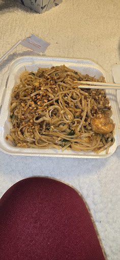 The food was hot and good. The pad thai, which was well seasoned, had approximately seven shrimp. The Crab Rangoon was also good. I would go back 3/5. It's Chinese fast food, which was good...