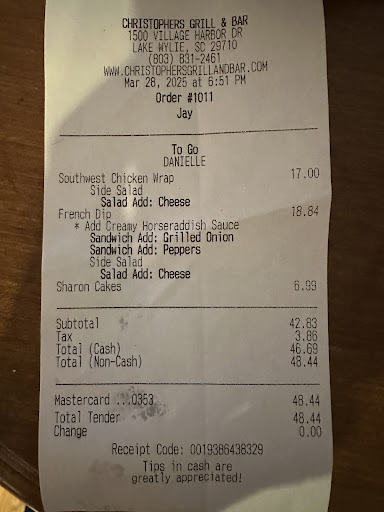 My brother and I had dropped my two 99 Suburbans’ off at the Express Tire in Lake Wylie and decided to grab some lunch while the shop was working on the tires. We walked down to Christopher’s Bar & Grill since it was one of my favorite places to drink and eat at back when I lived on Settlement Street in Lake Wylie back in 2007-2009. I have never experienced such disrespect and horrible service from them back in 2007-2009.