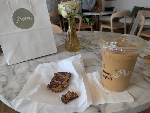 Read moreFollowed the rave reviews here from Barrington in search of a pastry and coffee. I got there an hour before closing so options were limited. I ordered the chocolate chip cookie -- so bitter, salty and hard it didn't taste like any chocolate chip cookie I've ever had. Disappointed. I also ordered a puffy molasses cookie thinking it would be a sweet, chewy, spicy baked good. Instead, it too was hard, bitter and lacking flavor except for heavy Black Strap Molasses. Yuck. My iced coffee was decent but I didn't know I had to ask for sugar. There's no where to help yourself they add it behind the bar. So my iced coffee with cream was also just not up to par. Yes I eventually asked for sugar, she suggested simple syrup and even after two pumps, it wasn't much improved. I'll skip Apres for sweets, however it is a lovely shop...