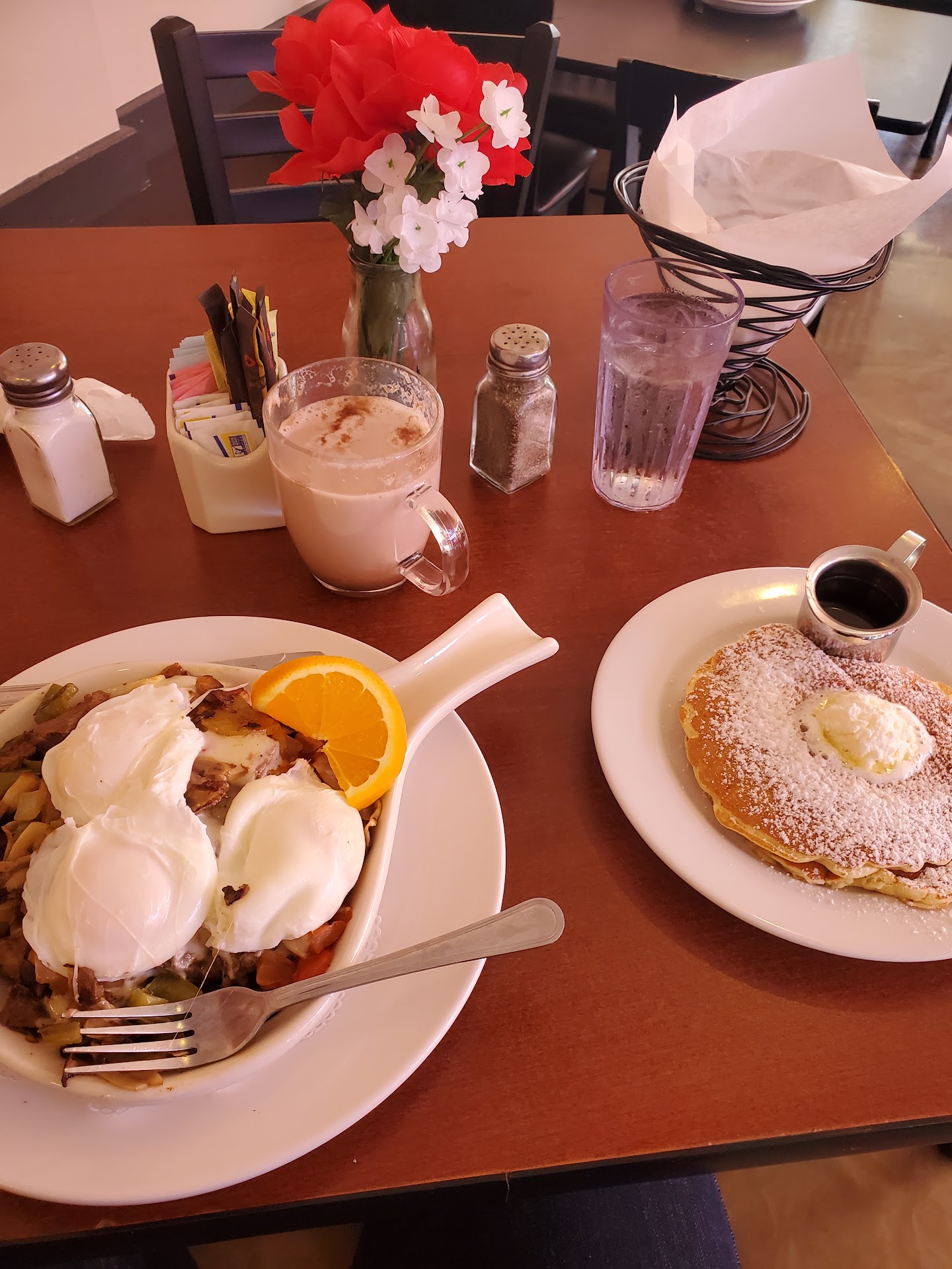 First of all. YOUR food made me sick. I’m 6 months pregnant. That’s terrible service. I’ve had better service at a carnival. These people are disgusting. UNCLEAN. UNPROFESsIONAL. I will be calling for the owner. Because I paid 25$ total for a coffee, and a steak skillet and terrible service along with stomach issues. THAnk god I didn’t bring my child here. TERRIBLE I won’t be back. And I will make sure I tell others not to come here either. Terrible. The manager on the phone didn’t apologize or anything she just said “ok” and hung up on me. RUDE. UNPROFESSIONAL. Food that sucks does...