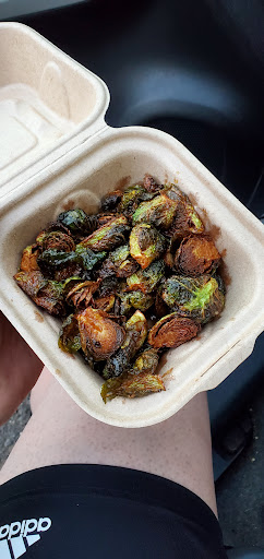 It was pretty slow - a few patrons here and there, both inside and out, with the feeling of a place where everybody knows each other, even if you're a stranger just passing through. The staff are all deeply friendly and helpful. The gentleman who took my order advised me on what would be best to eat in the car, since from the menu I could tell my usual query of "So what's best?" would be meaningless - EVERYTHING sounds amazing! I ordered the roasted Brussel sprouts and the French dip, and neither were at all what I was expecting... because they were BETTER. The Brussel sprouts hit you hard with what tastes like maple syrup up front, and then fade to a somehow deliciously burnt taste that takes the intensity off the sweetness. The French dip didn't come with dip (likely as a nod to my intent to drive while eating), but instead is almost more like...barbeque? The meat is tender and not at all stringy, the cheese adds a nice subtlety, and as promised, the sandwich is NOT drippy at all! The fries also are delightfully crunchy, holding that crunch long past the point most fries sag into sogginess.(See photos attached!)
