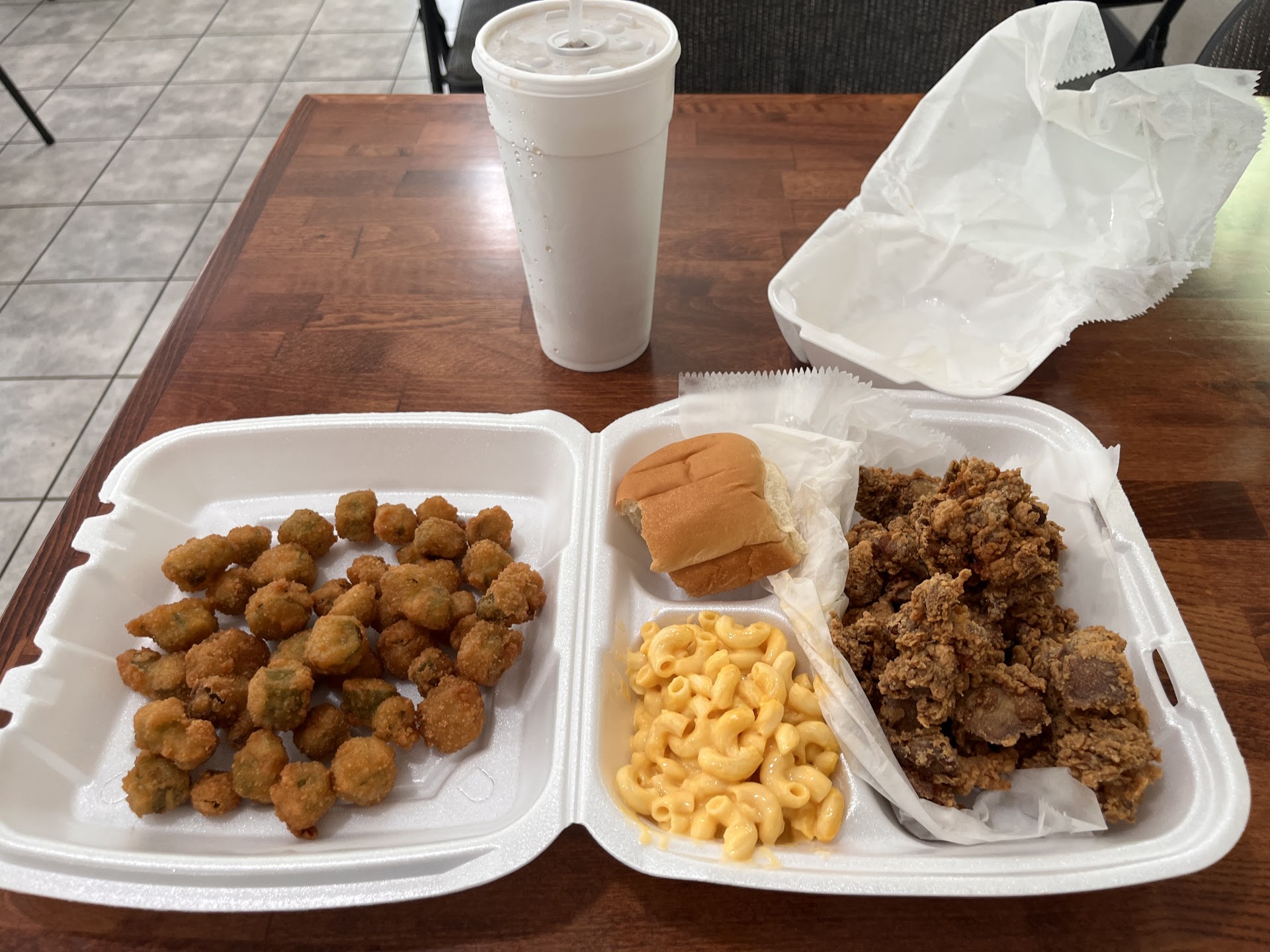 Not bad fried chicken. Green beans and baked beans were canned not fresh or home cooked. Nothing to write home about but there are a couple of other items on thier menu I'd like to try.