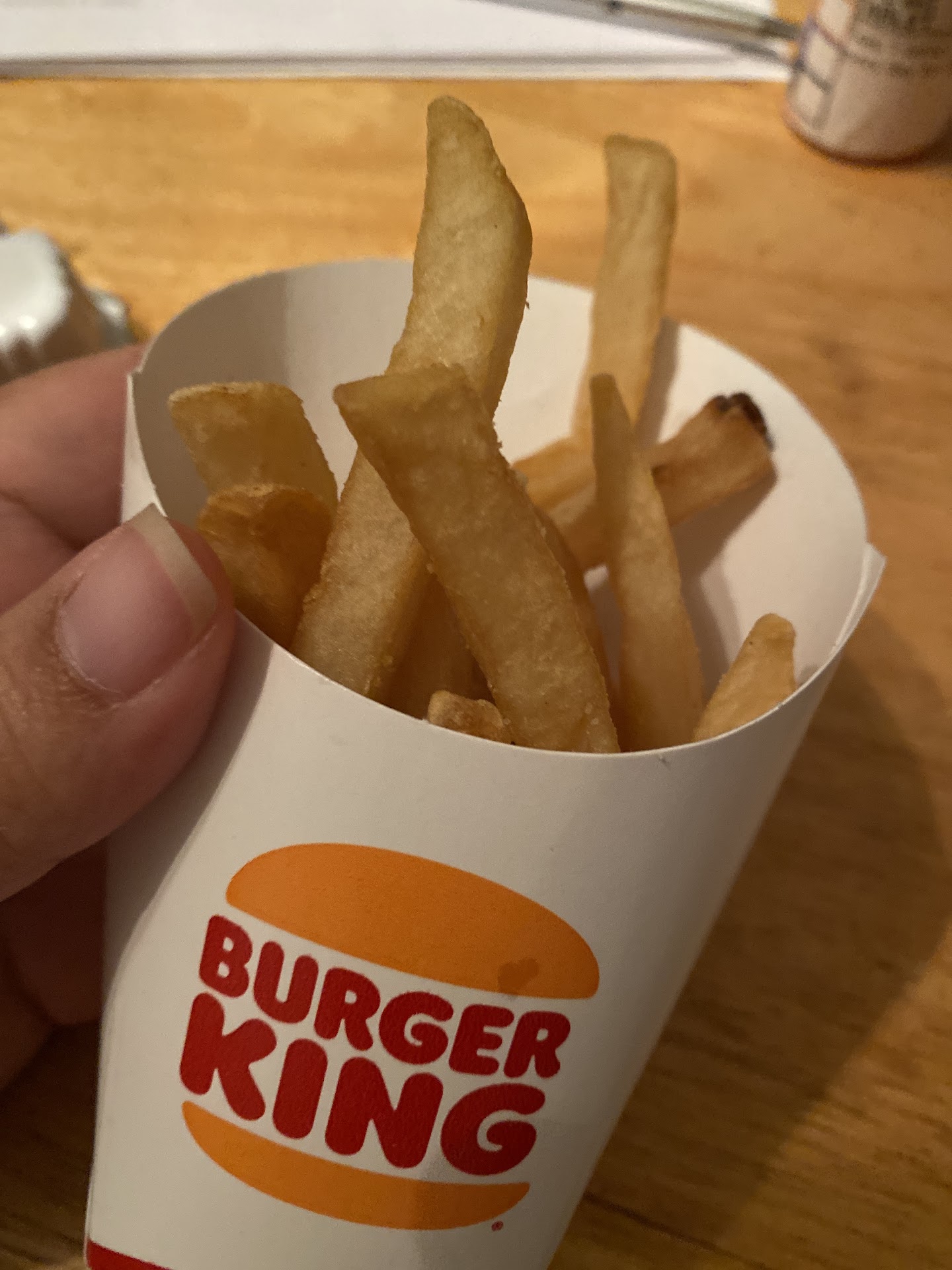 I haven’t visited a Burger King in quite some time and now I quickly realize why I don’t visit Burger King very often. First of all when you go through the drive up window to pay it’s kind of like you’re looking into the back room where everybody just hangs out there was a guy Sitting down with his feet up on the desk looking at his phone couldn’t tell if he was a manager or not. Another guy walking around drinking an energy drink, just completely unprofessional looking. When I go to the second window to get my food, the woman asked me if I wanted zesty sauce for my onion rings and I said no, but I’ll take some ketchup instead. Of course when I i’m ready to eat and I opened the bag there’s zesty sauce and no ketchup whatsoever! I guess she has a five second memory retention span. And last but not least I start eating the whopper and I’m kind of noticing that I don’t taste that open flame grilled burger taste that they’re so famous for. when I opened the burger, I see this dull gray piece of meat with no familiar grill marks on it, and needless to say I threw the rest of it in the garbage!! Won’t be having any Burger King cravings for...