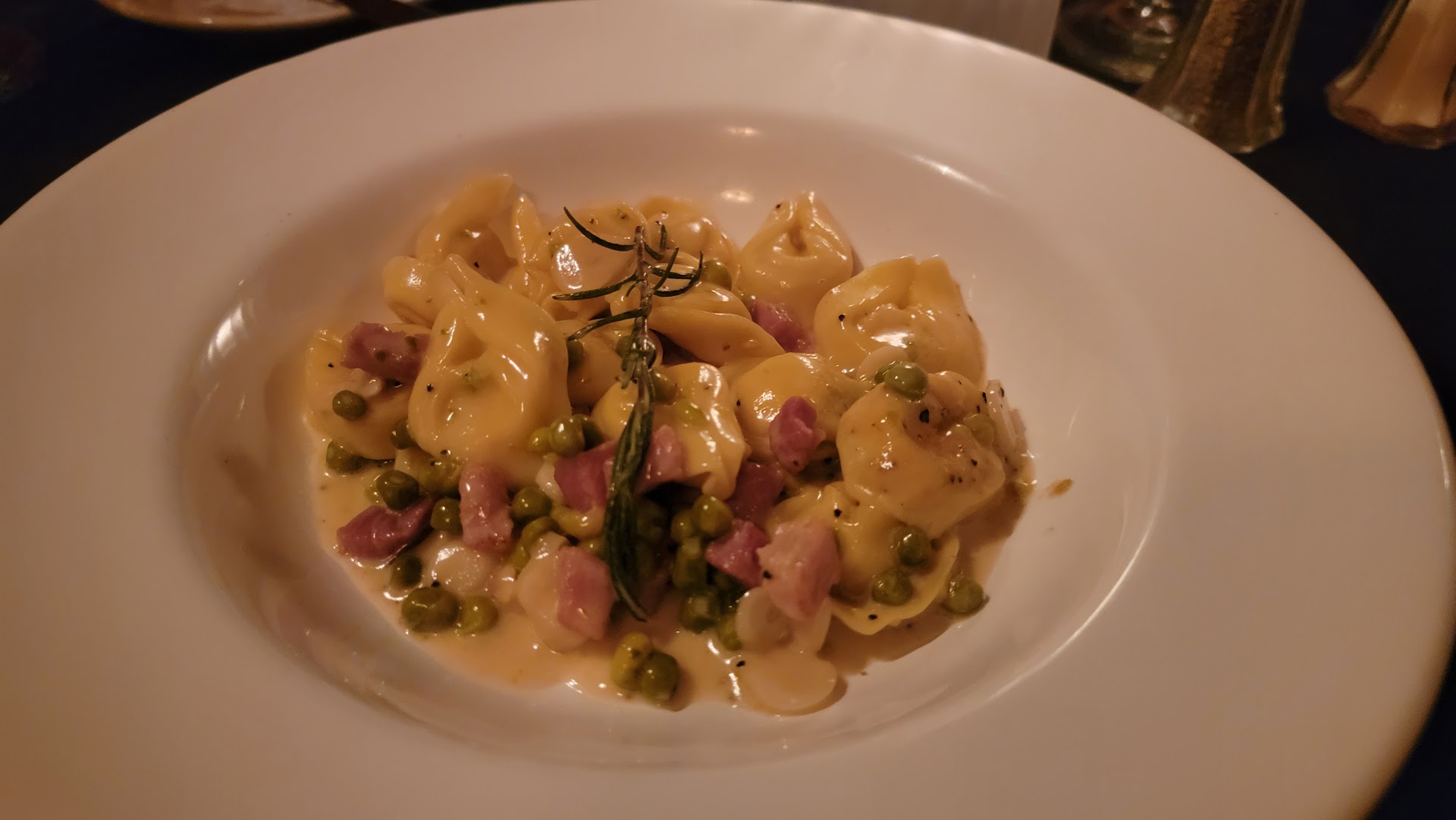 1st picture: Cheese Tortellini 4/10 : included ham chunks and peas with a sprig of rosemary. Overall a decent flavor and enough to share around. The rosemary left a lasting taste though after each bite. Also disappointing is that they do not make the tortellini themselves. Could grab a bag of the same at Walmart and make my own with ham and peas.