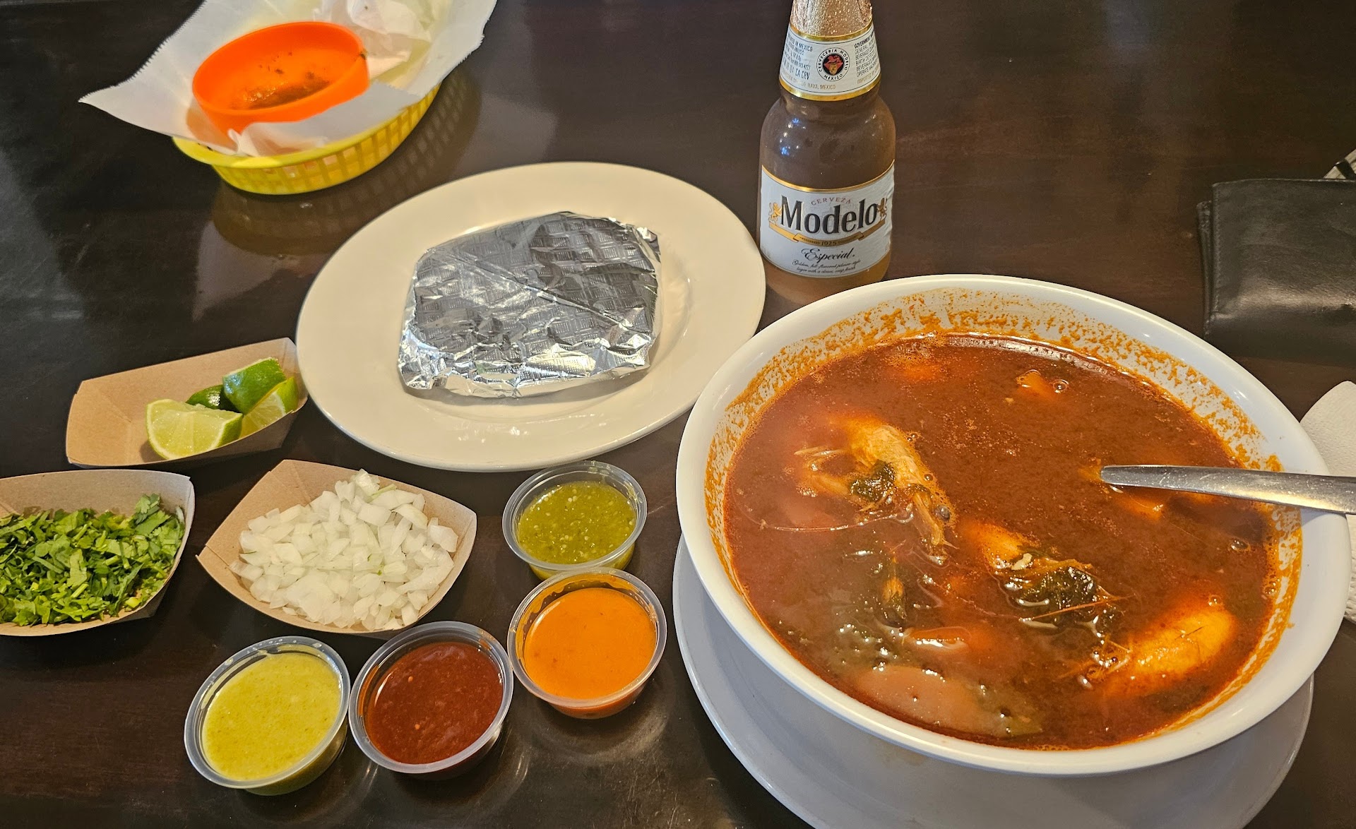 I cant say too much about the environment since I was the only customer at the time. I went there around 730pm and was surprised it was dead. I was promptly greeted which was good and something I look for. They had what looked like a bar but was not. It seems they only serve beer which was highly priced so I skipped on that. The menu was not too overwhelming however I really wanted birria but they didn't have it. I'd reccomend they add it to the menu also drinks. There aren't many Mexican restaurants I've been to that didn't at least have margaritas. On to the food I ordered a steak burrito which was excellent in size but lacked flavor I had a side 2 street chicken tacos which were also bland. I ordered my wife a chicken parrillada which was the same as mine. I'm not sure if it was an off night or because it was slow so overall it was ok. Maybe I'll give it another try when they have a larger...